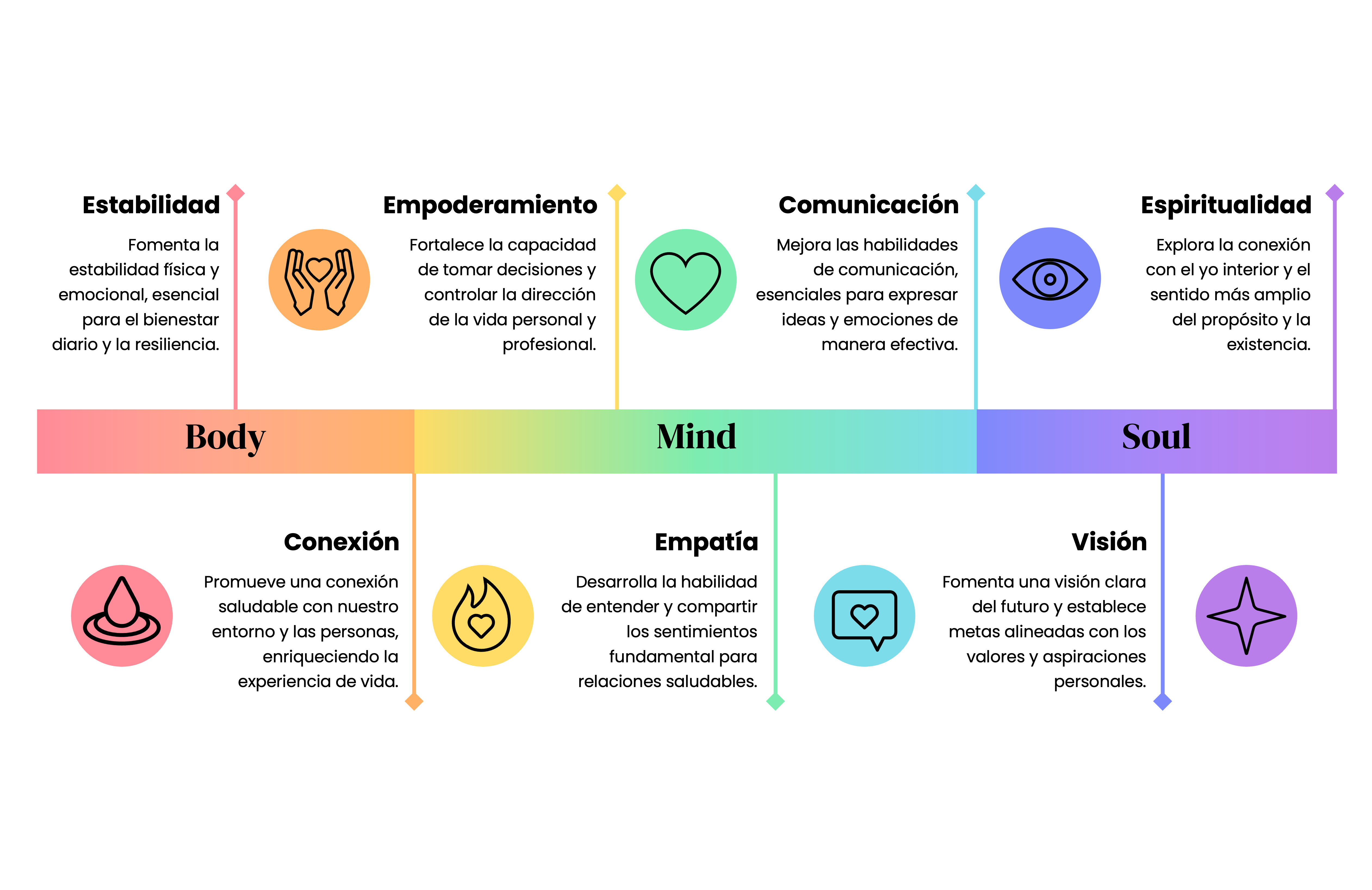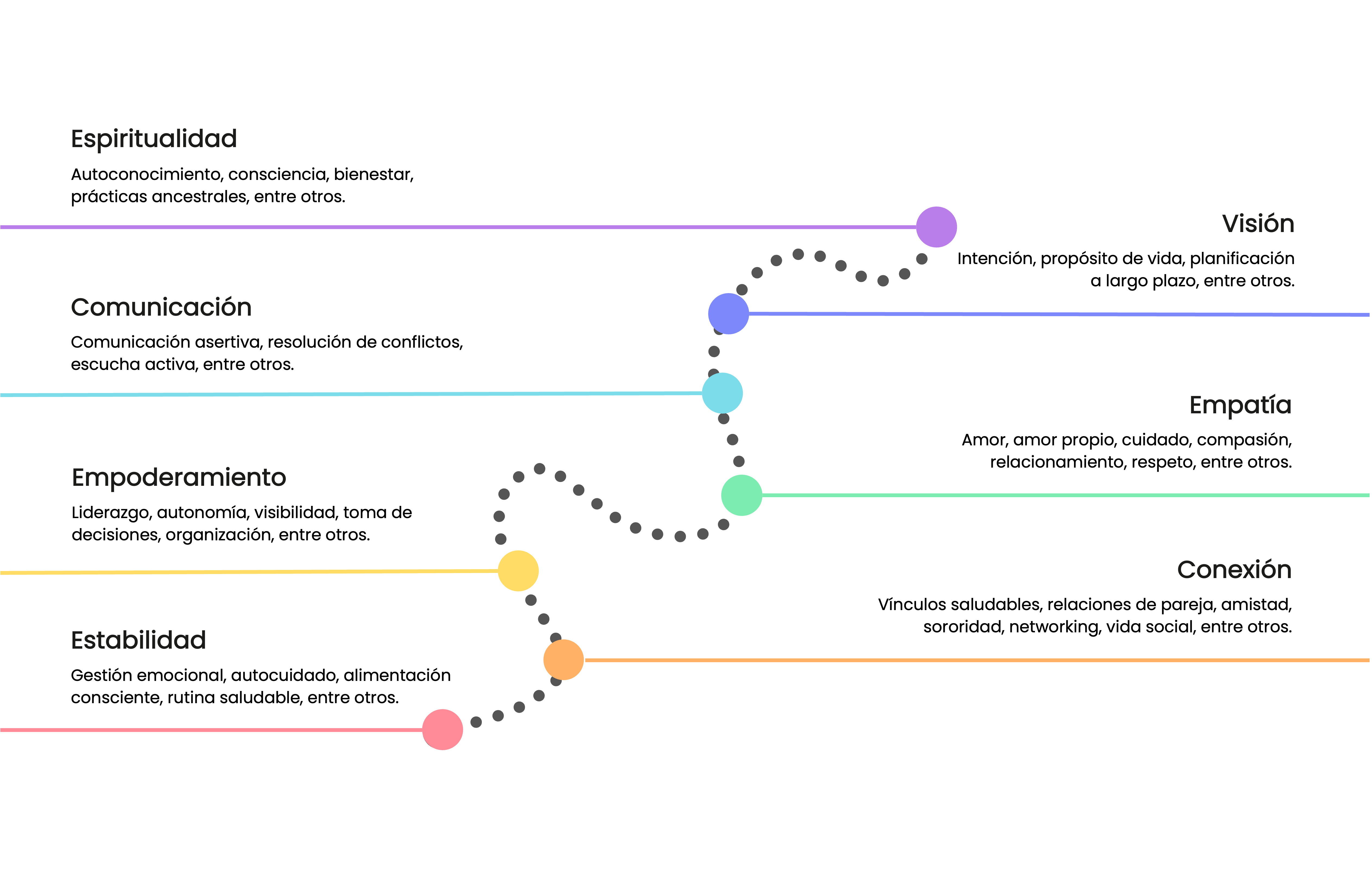 Zonas de enfoque dentro de tu camino que representan las necesidades fundamentales del ser humano.
